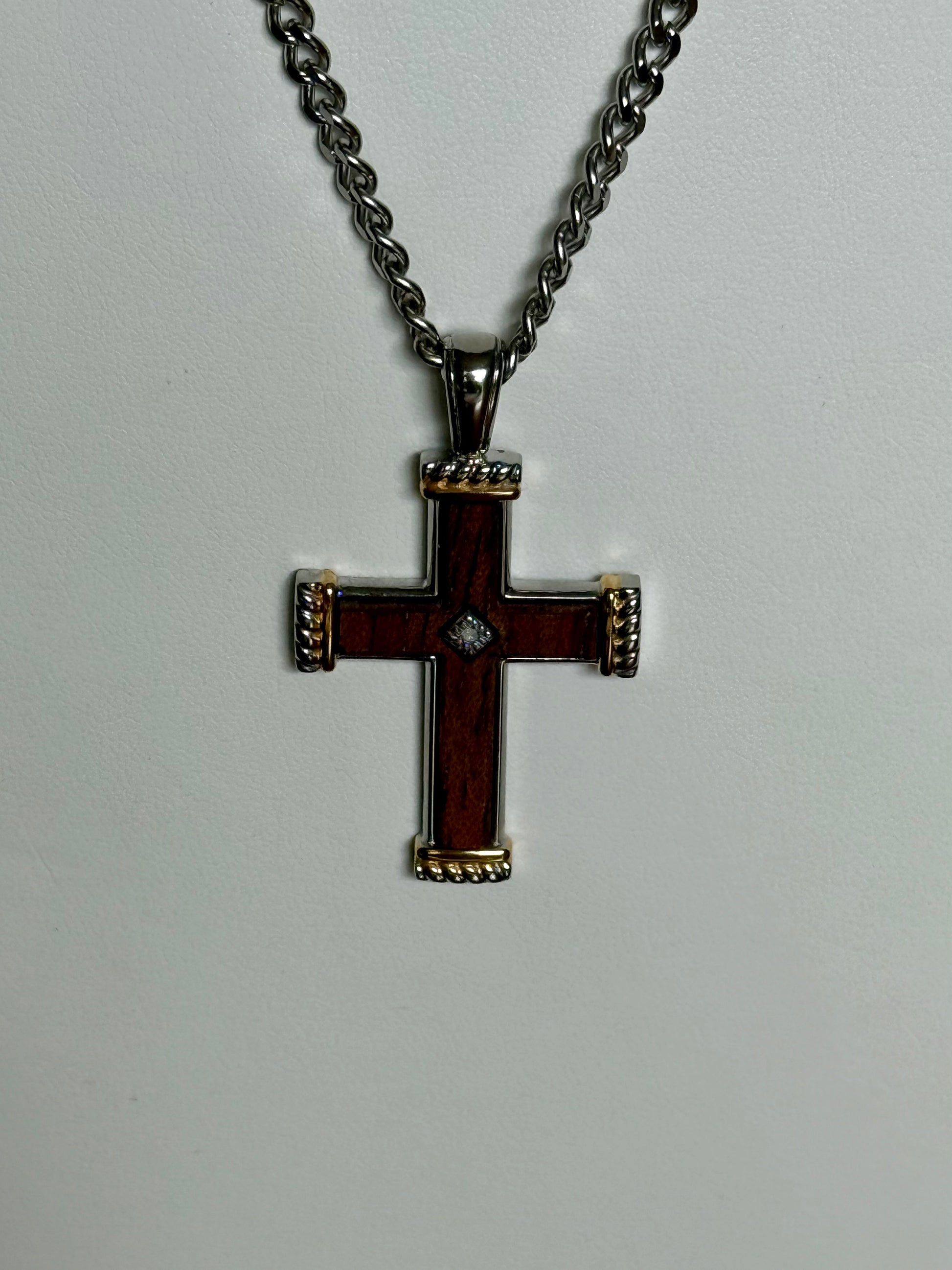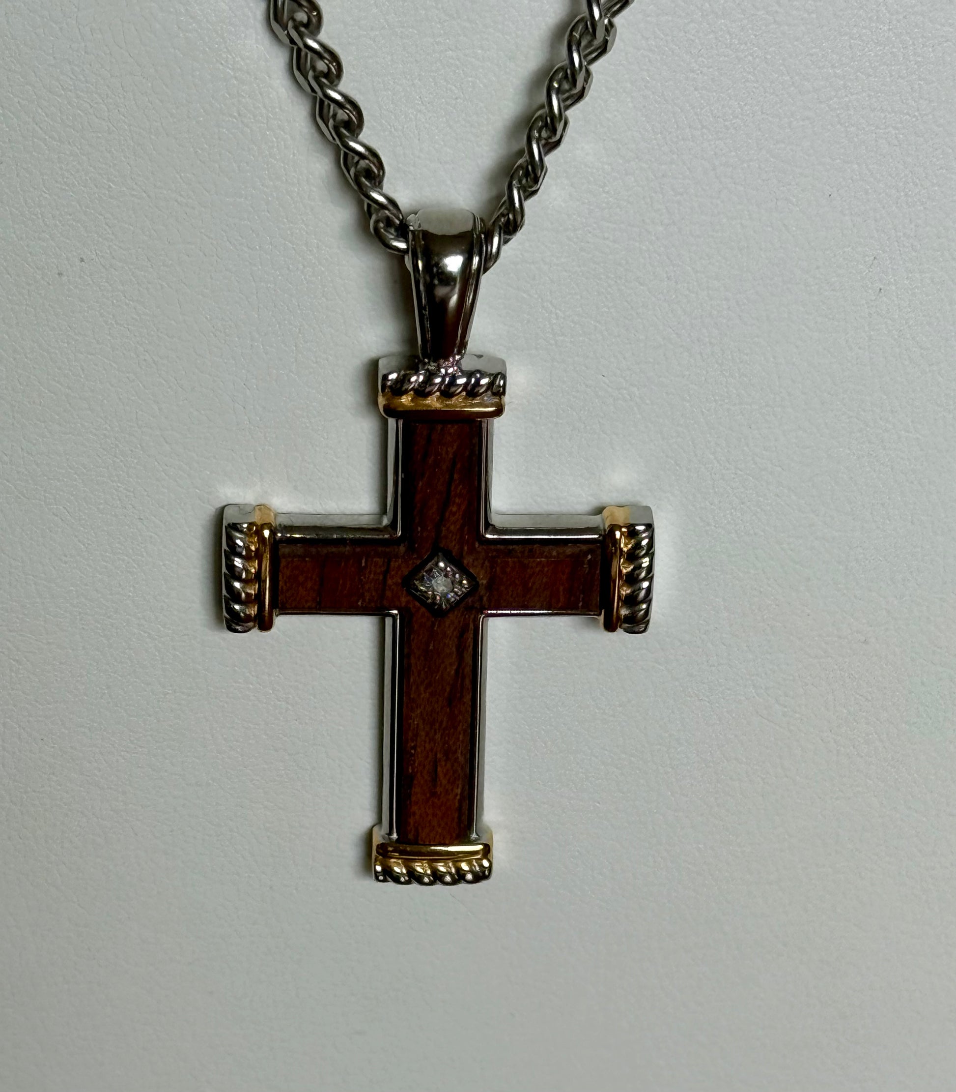 Sterling Silver Cross Pendant Necklace! Includes Gold Toned Bands! Wood Simulate! Confirmation Encryption On Back Side! 23” Chain! Pendant Measures 1 1/4” W x 1 3:4” H. Weighs 19.8 Grams! NWOT! High Gloss Finish! Three Day Money Back Guarantee!