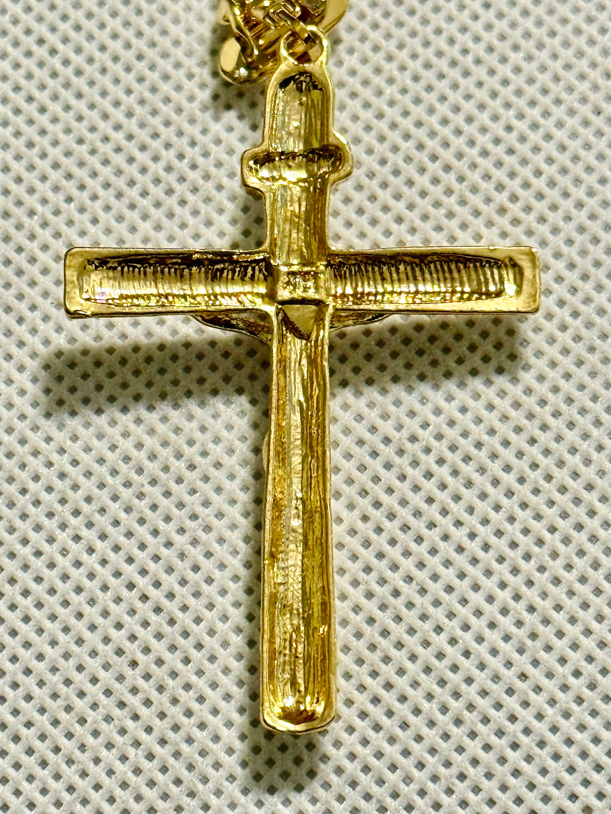 10K Gold Filled Pendant Necklace! High Gloss Finish! Tarnish Free! 24” Figaro Charm Chain Necklace! 55 x 35mm Crucifix Pendant! Weighs 22.9 Grams! All Jewelry Is Cleaned And Polished Before Shipping! Three Day Money Back Guarantee! NWOT!