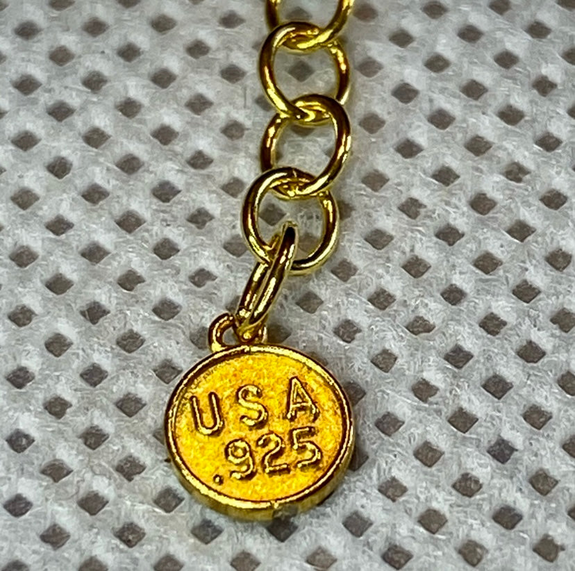 Pavé cubic zirconium stones in gold vermeil! Pendant = 12mm x 14mm. 16” chain + 8” extension! Weighs 3.9 grams! Three Day Money Back Guarantee!