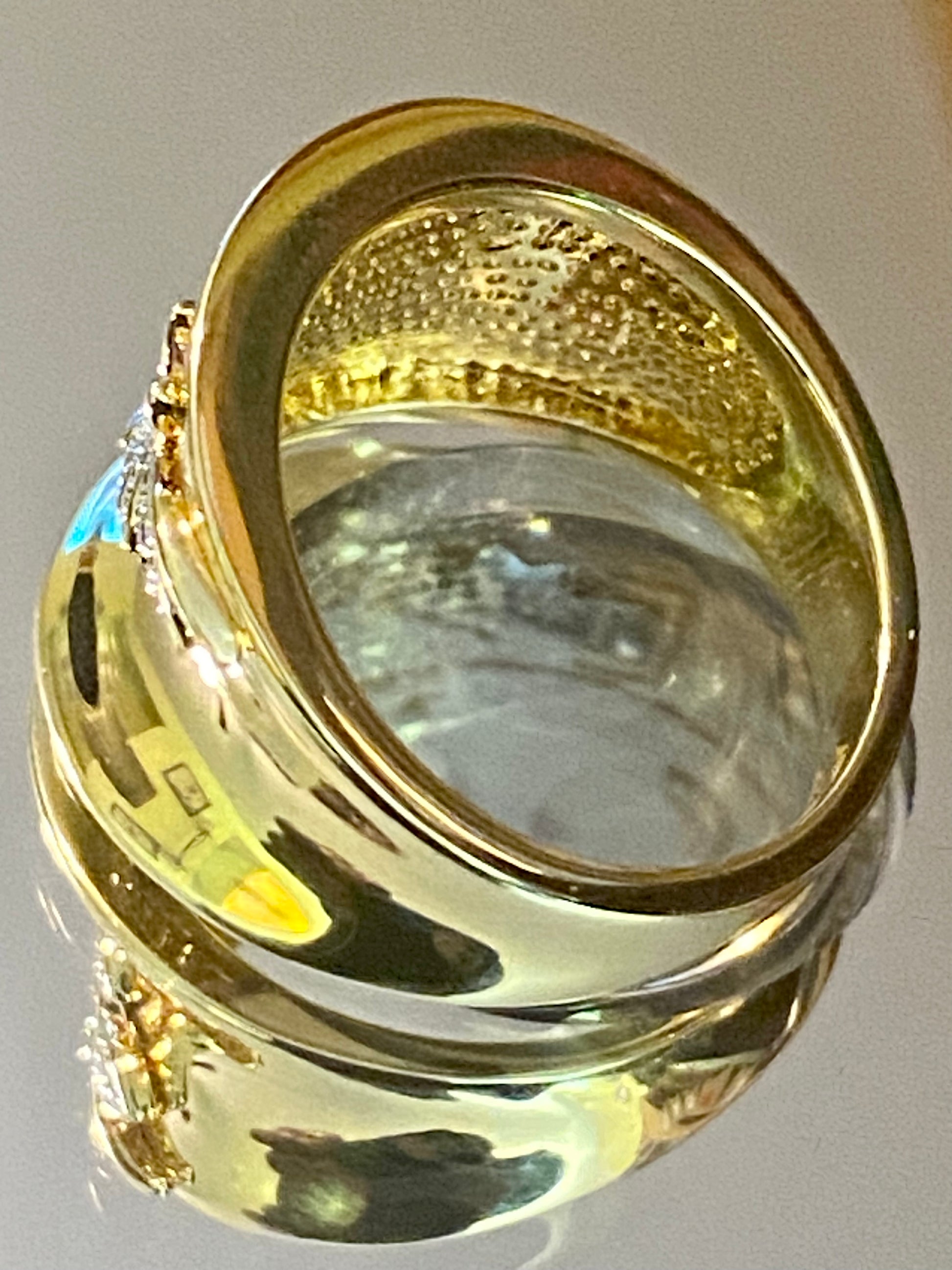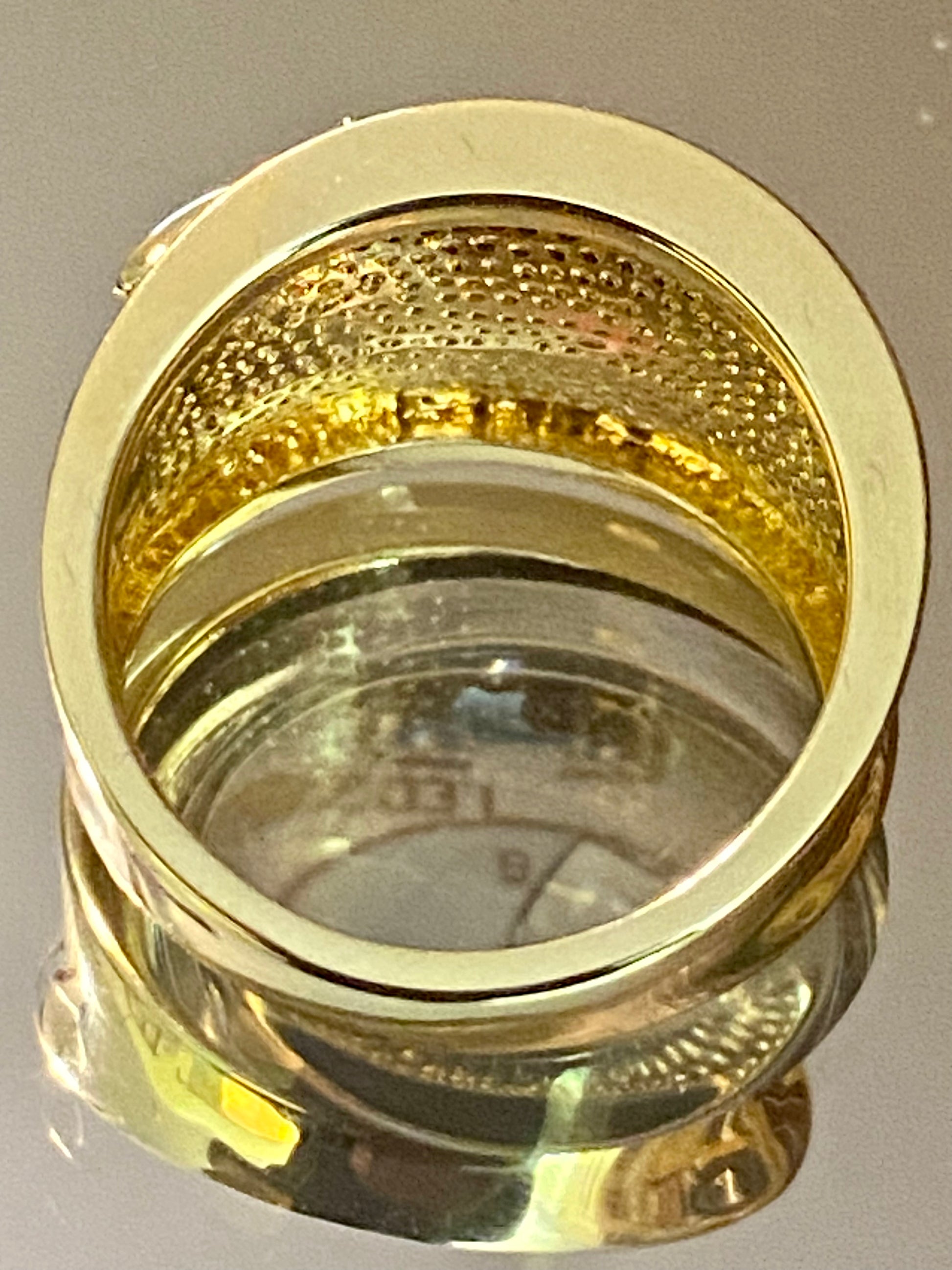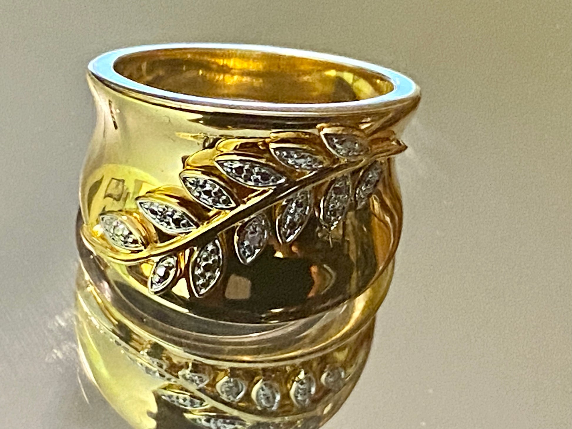White Diamond Accent, 14K Yellow Gold Over Bronze Wide Band Leaf Design Ring! Size 8! Emulous Trademark! Measures Approximately 13/16” L x 9/16” W. White Rhodium Enhanced Settings!! High Polish Finish! NWOT! All Jewelry Is Cleaned And Polished Before Shipping! Three Day Money Back Guarantee! Only $55