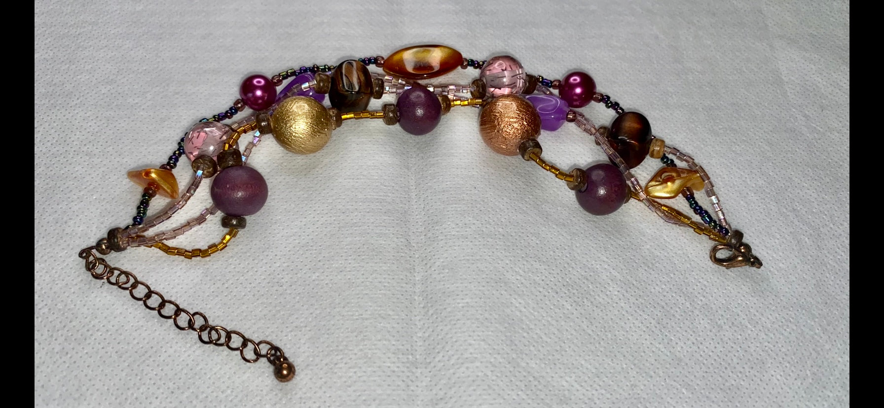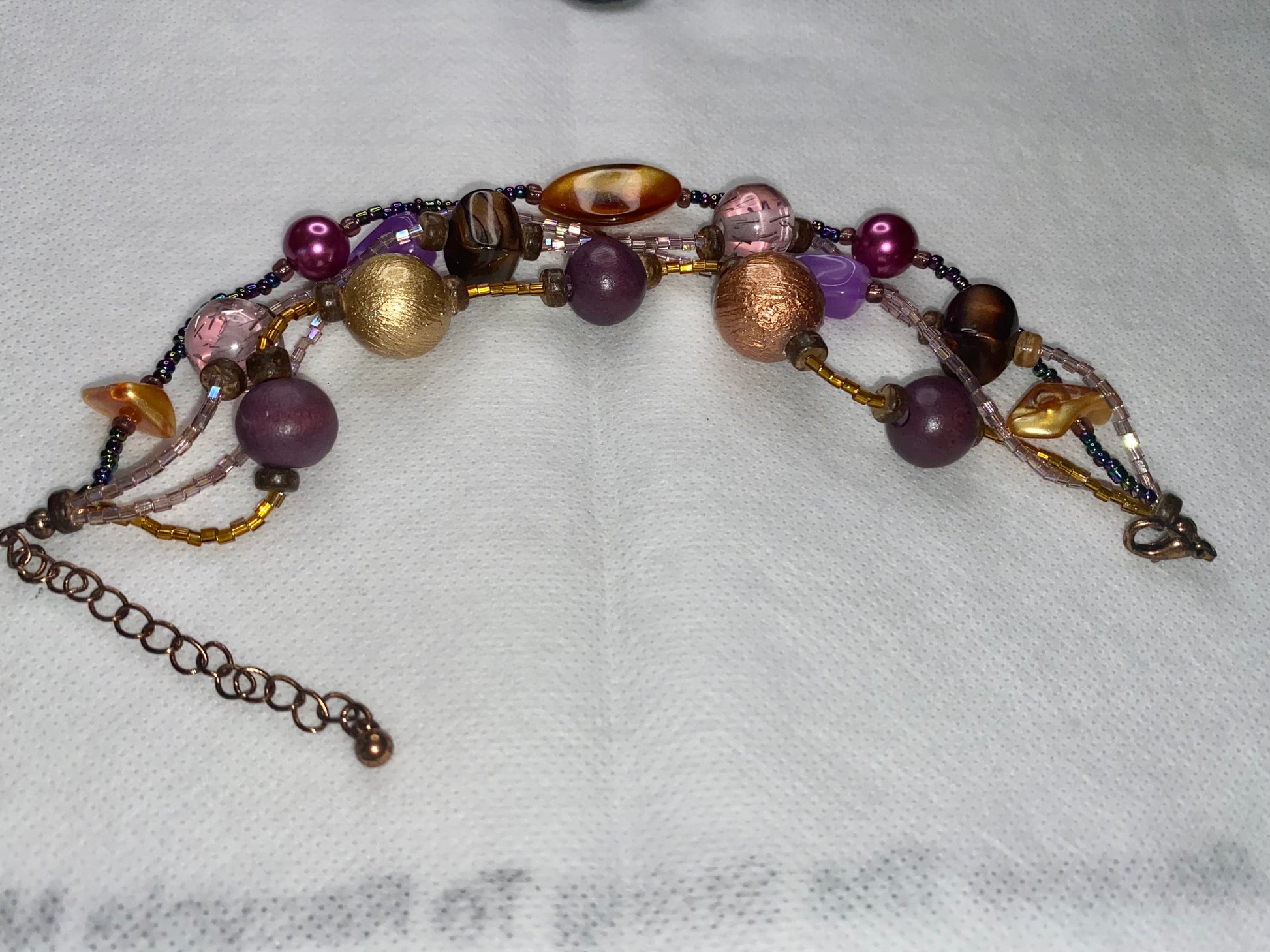 Ladies Multi-Strand Bracelet! Featuring Multi-Colored Medium From Hard Plastic To Quartz Stone! Lobster Claw Clasp With Copper Link Connection! Total Length = 11”. Total Weight Is 21.2 Grams! Adjustable. So It Fits All Sizes! NWOT! Three Day Money Back! All Jewelry Is cleaned And Polished Before Shipping!