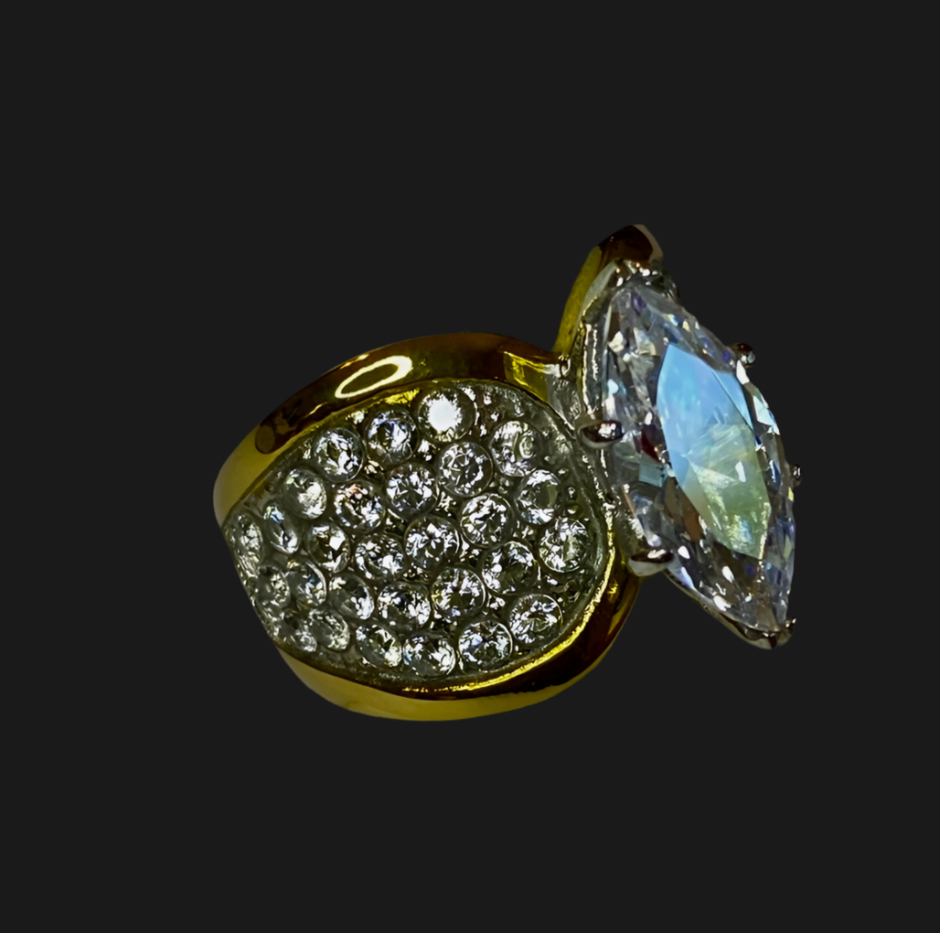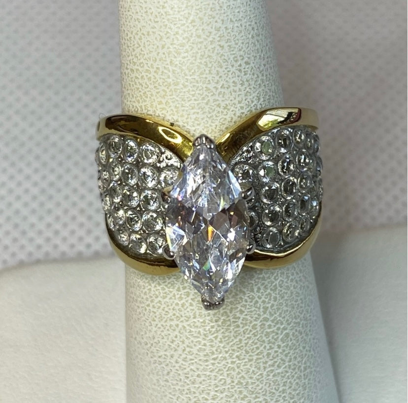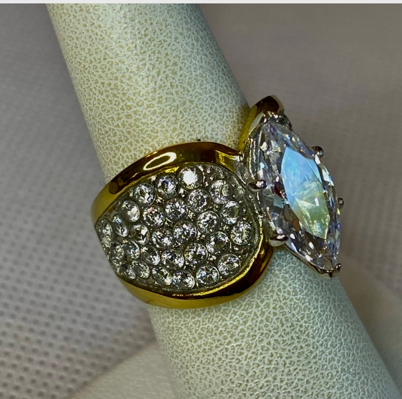 Royal marquise 3.5 carat Ring! No tarnish stainless steel! Size 7. AAA graded CZ. Clear crystals! Main stone is 14 X 7mm. Weight is 11.4 grams! NWT! Three Day Money Back Guarantee! Only $28.
