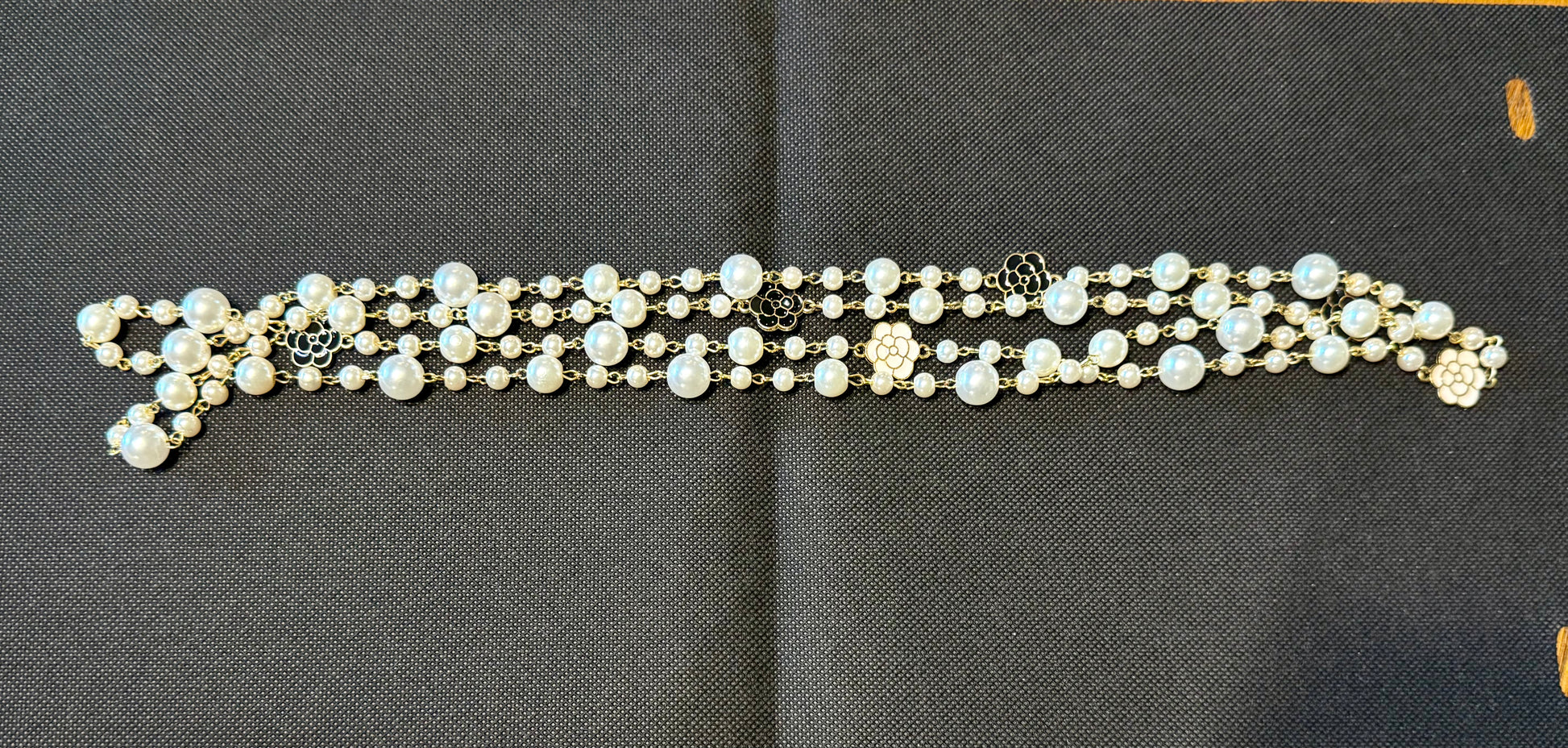 DHcollections nk-123 Oil Drip, Rose Flower Style, Pearl Layer Ready Chain Necklace! Double Side Ornament! White On One Side, Black On The Other! Weighs 71 Grams! 27” Long! NWOT! Three Day Money Back Guarantee!