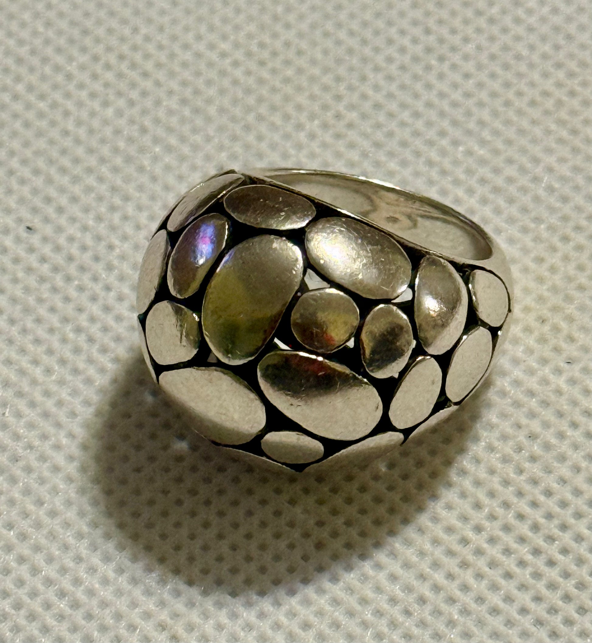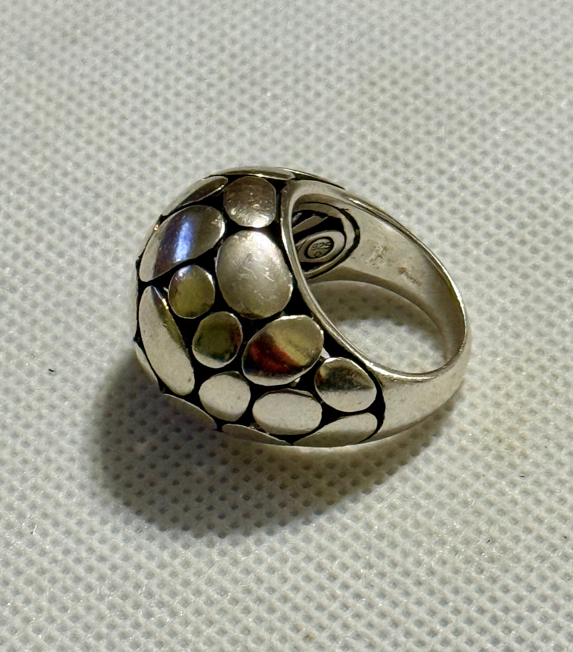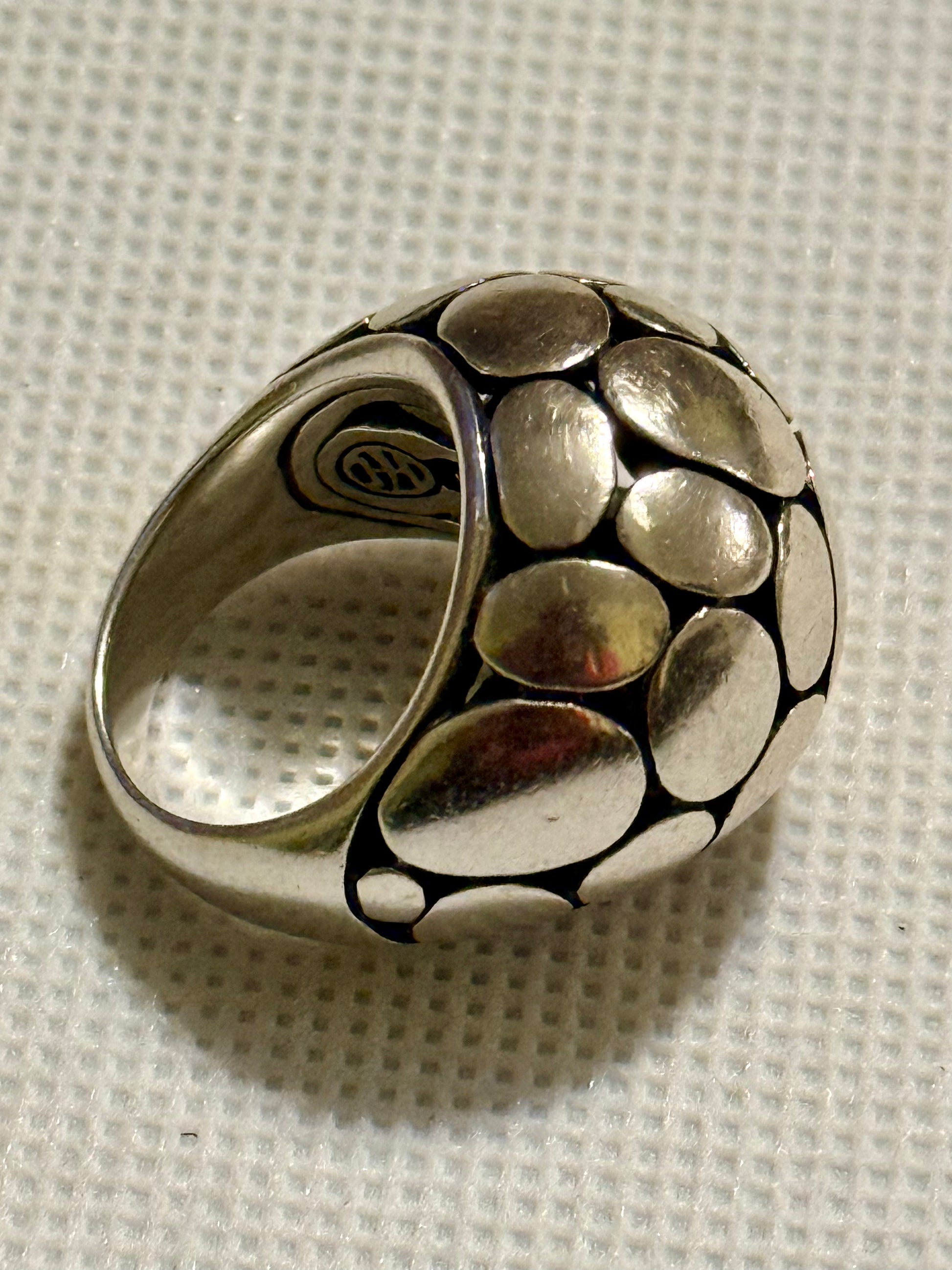 John Hardy Kali Dome Ring! Size 6.75. 925 Sterling Silver! High Gloss Finish! Includes Jewelry Pouch! Total Weight Is 14.4 Grams. Band Width Is 5.2 mm. Ornament Length is 20.2 mm. Ornament Width Is 25.4 mm. Excellent Condition! Three Day Money Back Guarantee!
