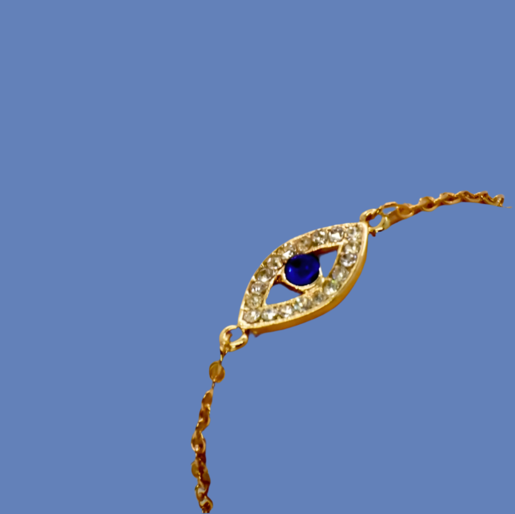 Fashion rhinestone evil eye amulet gold plated bracelet! Celtic Style charm bracelet!! Lobster claw clasp! Chain length is 6 + 3 inches long! Rhinestone eye is 1 inch wide by 1/2 inch tall! All Jewelry Is Cleaned And Polished Before Shipping! Three Day Money Back Guarantee!